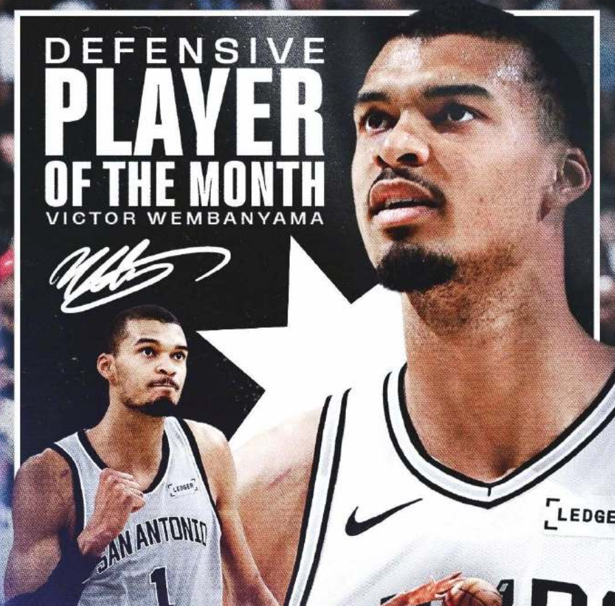 这是文班亚马NBA生涯第一次拿到月最佳球员,他的表现非常犀利,也算是实至名归。在文班亚马的带领下,马刺队的防守质量始终是联盟顶级的,非常强势。任何球队面对马刺队,都会大大降低进攻效率,因此内线的文班亚马难以被逾越。